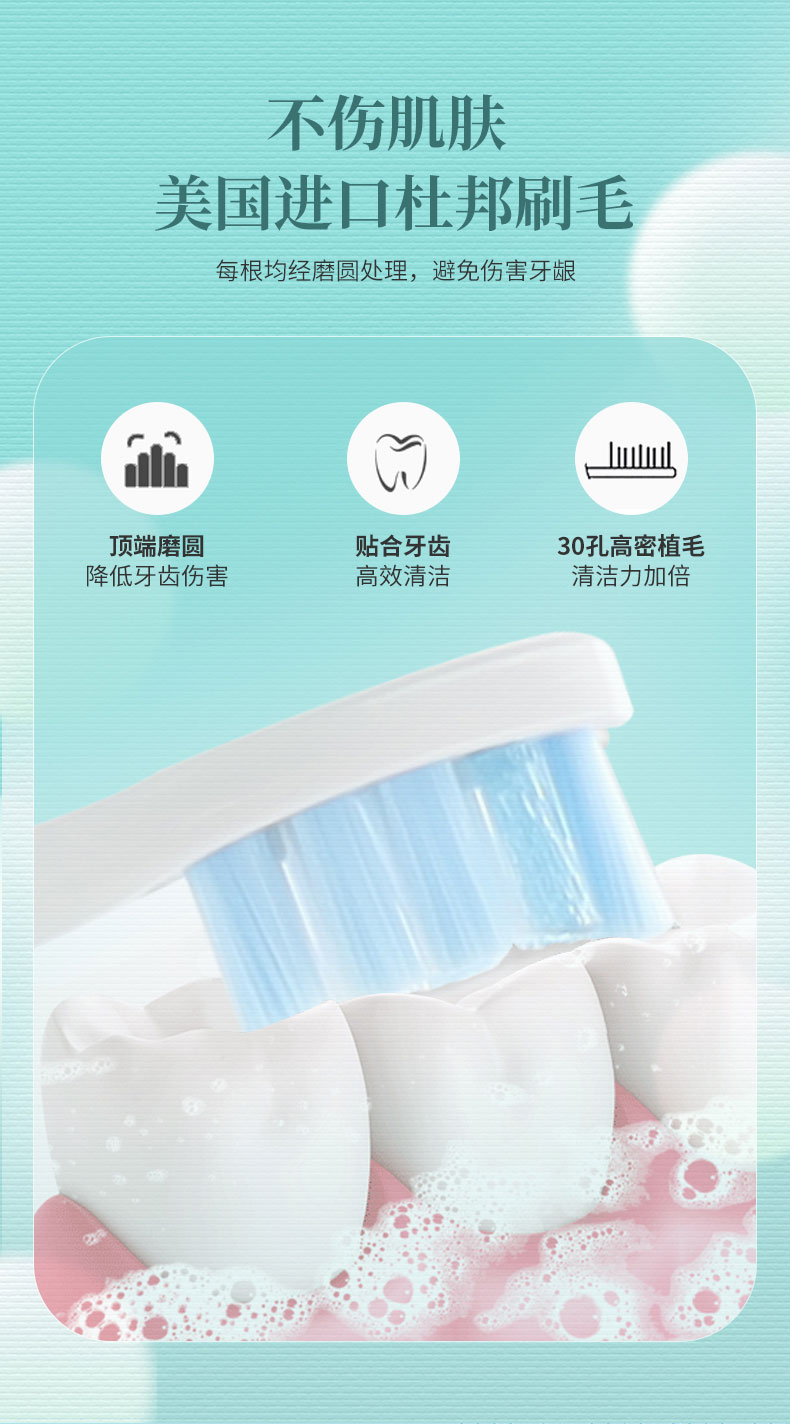 4、杜邦刷毛頂端磨圓處理,高效清潔,不傷肌膚