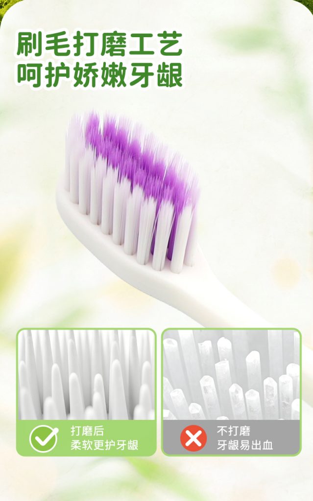 1、抗菌護(hù)齦:0.12mm 超纖細(xì)柔抗菌軟毛 + 高磨圓工藝,雙重呵護(hù),溫和清潔換牙期牙齦,適配兒童口腔使用。