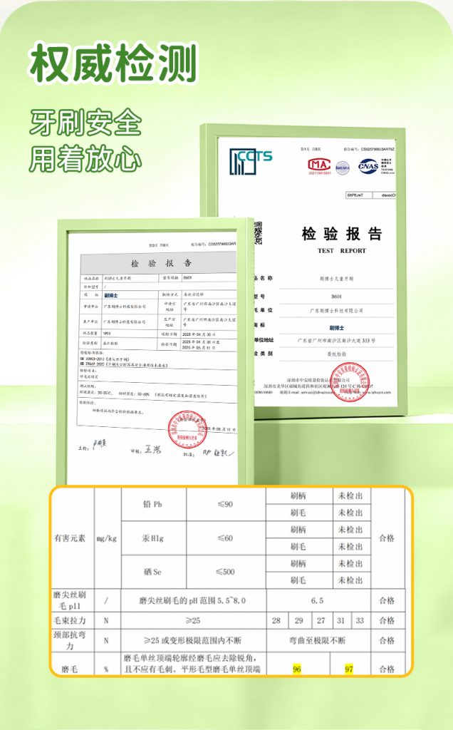刷毛規(guī)格:0.12mm 超纖細(xì)柔抗菌軟毛,磨圓率符合兒童牙刷安全標(biāo)準(zhǔn)